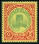 MALAYSISKE STATER. Trengganu. 1938. 5$ rød/grøn, gul, Sultan Sueiman. Meget let hængslet. SG £500