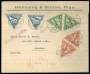 1928. Luftpost, 10 Santimer, grøn (par) og 15 Santimer, rød (par) samt 25 Santimer, blå (2). Rekommanderet brev sendt fra RIGA 21.1.36 til Zaandam i Holland.