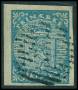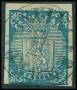 1855. 4 sk. blå med variant: Nedre højre hjørne spaltet (pos. C5). Facit (1v3)