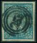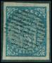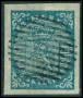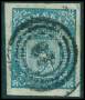 1855. 4 sk. blå med stor variant i øvre højre hjørne.