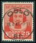 1946. 25 øre rød på FDC kort stp. Haugesund, rust på takker.
