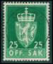 TJENESTE. 1955. 25 øre grøn LUX stp.