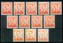 1958-69. 30 fr. orange. 9 stk. samt 3 med fosfor. AFA 945,-