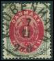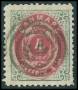 1870. 4 sk. grå/rød i vandret 4-stribe, de 2 venstre mærker med korte takker i nord.