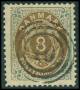 1871. 3 sk. grå/lilla med farvet ovalbånd over det meste af Danmark i ovalen.
