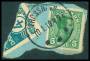 1919. 4 øre blå halveret korsbåndklip og 5 øre grøn på klip stp. Thorshavn 10.1.1919. AFA 5000,-