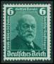 1936. 6 pf. grøn med variant: Trappe ved venstre øre. Mi. (604 III)