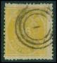 1873. 16 sk. gul med dansk nr. stp. 1, minus takker foroven.