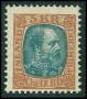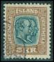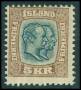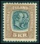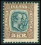 1912. 5 aure grøn med stor hvid plet i A i Island.
