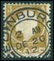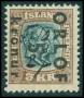 1907. 5 kr. brun/blågrå med Orlof overtryk og blækannulleret med dato, sjældent.