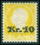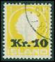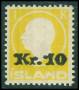 1915. 10 aur rød på klip med linie stp. Islands Falk.