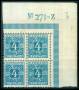 1921. 4 øre blå i marginalblok.