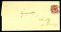 1875. Tofarvet, 8 Øre, grå/rød. Brev sendt fra HOLBÆK 26.5. til Kundby pr. Svinninge. Ankomststemplet SVINNINGE 27.5. Flot kvalitet.