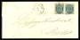 1875. Tofarvet, 4 Øre, 10. Tryk, Position B93-94 (parstykke). Brev sendt fra VORDINGBORG 24.11. til Præstø. Annulleret med nummerstempel 78. Transitstemplet LUNDBY 24.11.1877 (LAP VIa).
