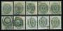 1875. 3 øre ultramarin/grå x 10. AFA 7000,-