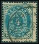 1875. 4 øre grå/blå med stor blå farvespies i nord.
