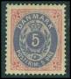 1875. 5 øre rød/blå tryk 2 pos. 3 RF 20.3.