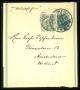 1875. Tofarvet, 3 Øre, grå/blå. Opfrankeret på Korsbånd, 4 Øre, blå. Overfrankeret med 2 øre, da der ikke fandtes 1 øre. Sendt fra KJØBENHAVN 13.3.96 til Amsterdam i Holland. Ankomststemplet AMSTERDAM...