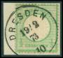 1872. 1/3 gr. grøn pragt stp. på klip.