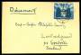 1951. Polsk-Østtysk Venskabspagt, 50 Pfennig, blå. Singlefrankering på brev sendt fra BRANDENBURG 5.7.21 til Løgtvedgård pr. Svebølle i Danmark.