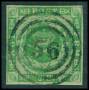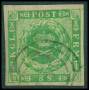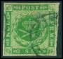 1858. 8 sk. grøn, bredrandet.