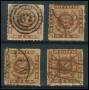1863. 4 sk. brun x 4 med forskellig annullering.