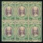 KELANTAN. 1937. 1 $ violet/blågrøn i 6-blok, brunlig lim. SG 390 £