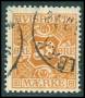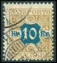 1907. 10 kr. brungul/blå med variant: Tynd nordrammelinie.