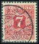 1907. 7 øre rød med variant: Brud på mærkebilledet under v.