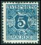 1907. 5 øre blå med variant: Fed midterstreg i E.