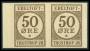 JERNBANEMÆRKER. Ebeltoft. 50 øre brun i utakket par.