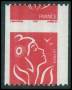 2005. 0,50 € rød med stærkt forskudt takning.