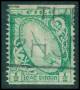 1923. ½ p. grøn vandret utakket.