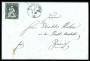 1862. Siddende Helvetia, 40 Centimes, grøn. Brev sendt fra NEUCHÂTEL 3.VIII.64 til Les Ormes i Frankrig. Ankomststemplet LES ORMES 6.AOUT.64. Rundt hjørne NV.