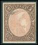 1865. 19 cu. brun/rød med omv. midterstykke uden lim fra Album De Facimiles med officielle forfalskninger udgivet af Philatelist Unionen i Geneve i 1928.