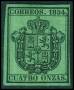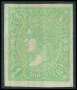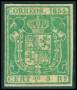 1854. 5 r. grøn uden lim forfalskning fra Album De Facimiles med officielle forfalskninger udgivet af Philatelist Unionen i Geneve i 1928 i et oplag på kun 500 stk.