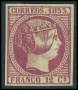 1853. 12 cu. violet uden lim forfalskning fra Album De Facimiles med officielle forfalskninger udgivet af Philatelist Unionen i Geneve i 1928 i et oplag på kun 500 stk.