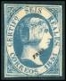 1851. 6 r. blå uden lim forfalskning fra Album De Facimiles med officielle forfalskninger udgivet af Philatelist Unionen i Geneve i 1928 i et oplag på kun 500 stk.