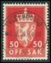 TJENESTE. 1955. 50 øre rød LUX stp.