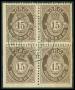 1910. 15 øre brun i 4-blok utakket 3-sider.