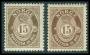 1910. 15 øre brun og rødbrun. NK. (102a,b) 2100,-