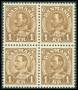 1933. 1 kr. brun i 4-blok med variant: Dobbeltpræg. AFA 2240,-