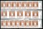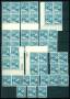 1973. 10 øre grøn i 3 ufoldede helark, alle med varianter.