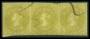 CHILE. 1862. 1 c. gulgrøn i 3-stribe tangeret blækannulleret. Mi. 150 €