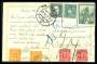 1937. Postkort til Danmark sat i porto, mærker er klippet.
