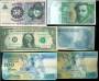 Album med mønt- og seddelbreve. Uruguay, Brasilien, Zambia, Letland, Anguilla, Sverige og Tyskland (3). I alt 9 stk.