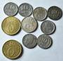 Frederik IX (1947-1972). Gule 1-Kroner (12 stk) og 2-Kroner (9 stk). Hækkerup-sæt. Div. udlandske- og spillemønter 820g. Ca 20 pengesedler især tyske 1910-20.
