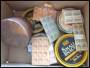 BUNDTER. Æske med bogtryks og tidlige stålstiks o blikdåser.