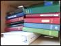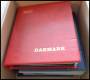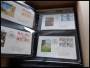 Flyttekasse med 8 mapper med diverse FDCere (1styk uden, men med nye sorte lommer og 2 stor æsker med diver kartotek med mærker i plastposer inl. andre lande.