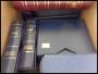 TILBEHØR. Storkasse fyldt med indstiksbøger.